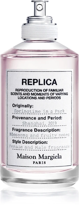 L’eau de toilette Maison Margiela Replica Springtime in a Park fait partie de la collection Replica, qui s’inspire de souvenirs liés à différents endroits et moments. Dans le cas de ce parfum, il s’agit d’une journée de printemps dans un parc en fleurs à Shangai. Comme tous les parfums de la collection Replica, l’eau de toilette Springtime in a Park est présentée dans un flacon minimaliste à l’étiquette en coton. Celle-ci affiche une description du parfum et de son caractère.